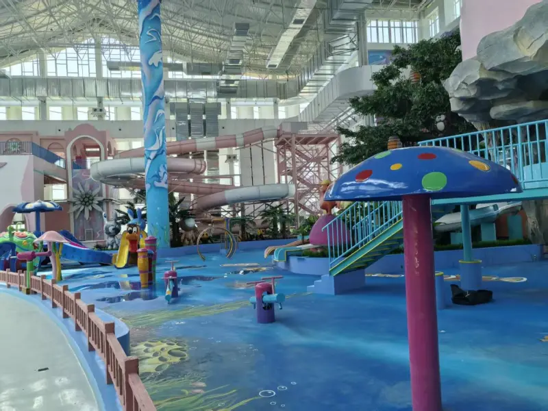 Der Indoor-Wasserpark bietet aufregende Attraktionen wie ein großes Wellenbad, einen Strömungskanal, eine riesige Trichterrutsche, eine Regenbogenrutsche und eine Schmetterlingsrutsche sowie für Kinder geeignete Einrichtungen wie Mini-Wasserrutschen und kleinere Regenbogenrutschen. Darüber hinaus gibt es 33 verschiedene thematische Thermalbecken im Innen- und Außenbereich sowie einen Infinity-Pool und einen Whirlpool.